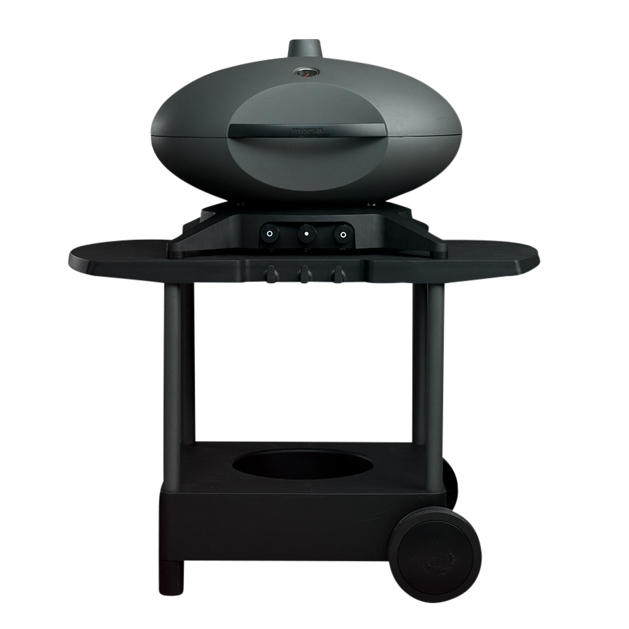 The Morsø Forno Gas Grande outer cabinet is made from moulded aluminium and the grilling grid from solid cast iron. The minimalist handle completes the front of the form, both in terms of design and ergonomics. At the same time, the four-legged frame provides a stable foundation which naturally and discretely makes room for both the control panel and the gas connections.